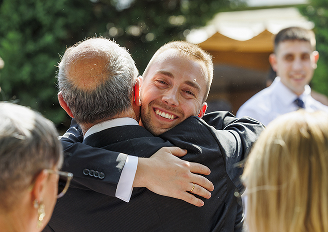 La ceremonia estuvo cargada de emoción desde el primer momento. Sonrisas nerviosas, abrazos llenos de significado y miradas que lo decían todo sin necesidad de palabras. Nuestro objetivo fue pasar desapercibidos para poder captar cada gesto de manera natural, dejando que la historia fluyera por sí sola. Ahí es donde nace la verdadera magia: en la espontaneidad y en el momento decisivo.